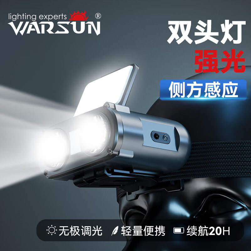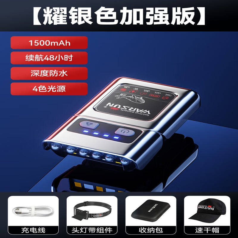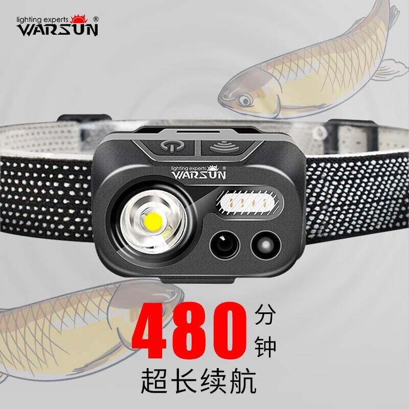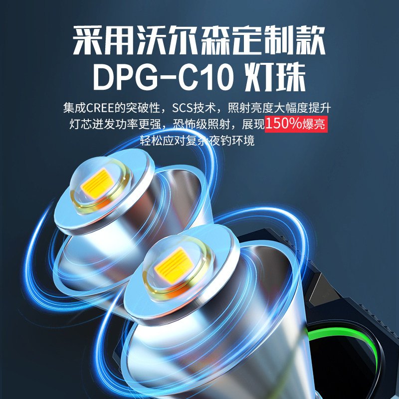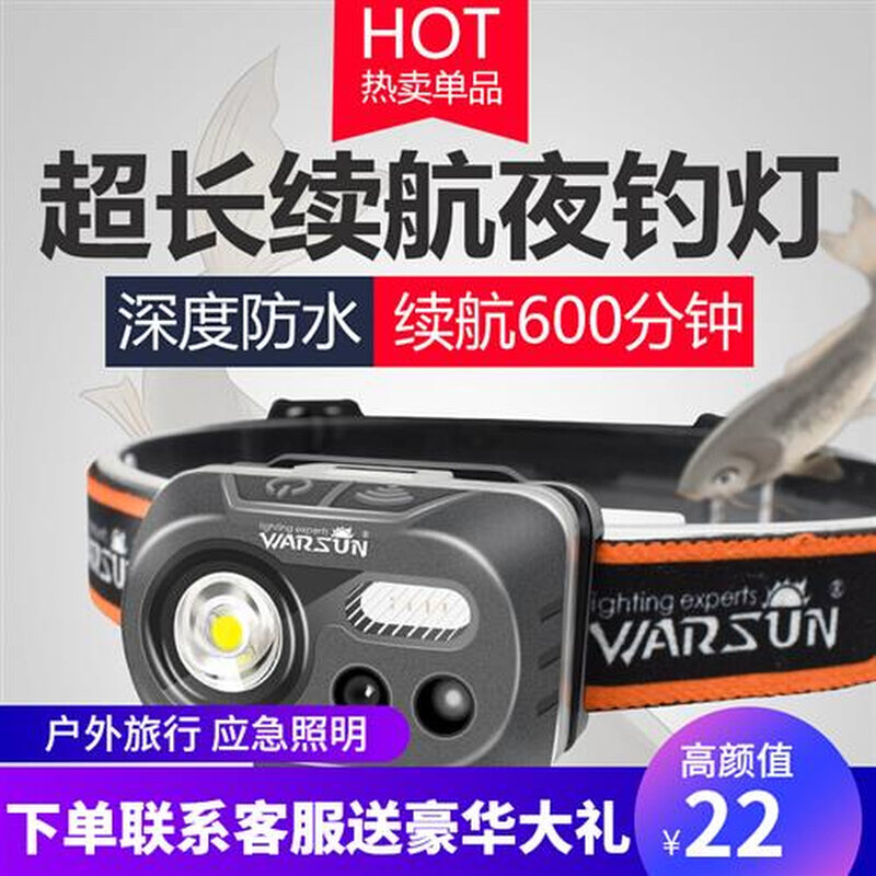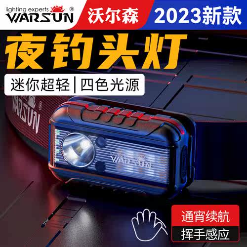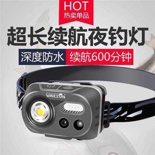 沃尔森夜钓强光头灯感应超亮钓鱼专用超长续航矿灯帽夹灯照明手电