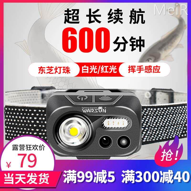 沃尔森夜钓头灯钓鱼专用强光充电超亮头戴式手电筒超长续航感应灯