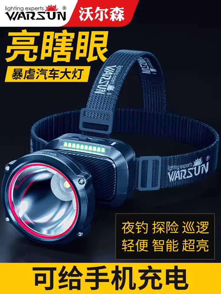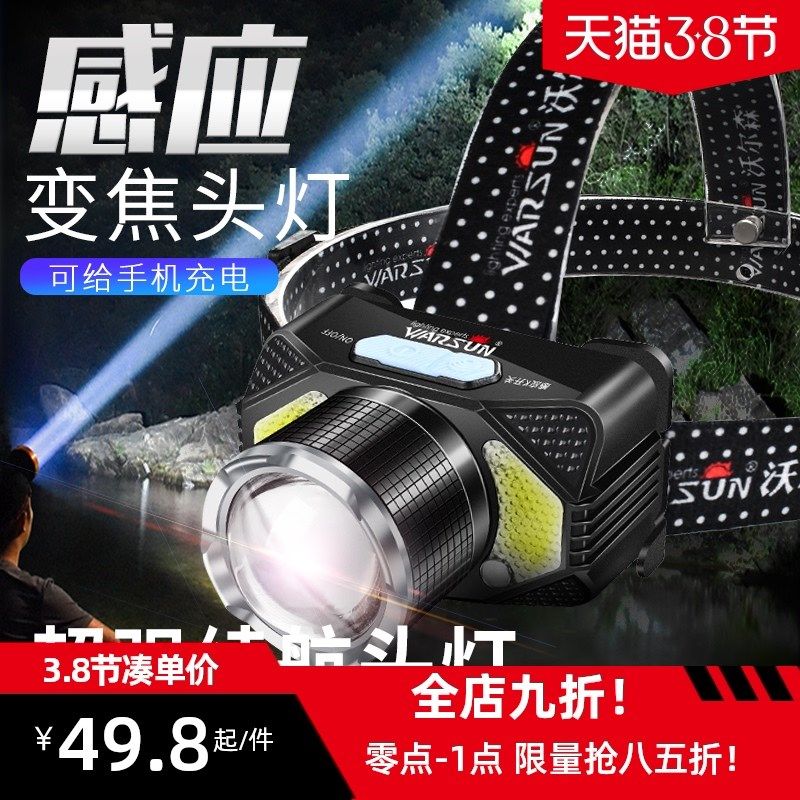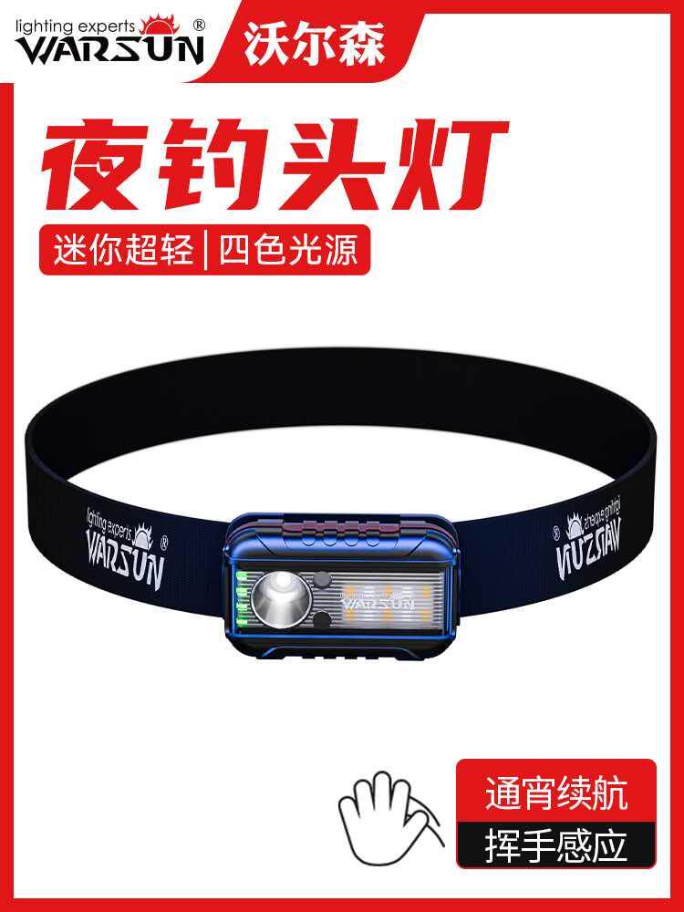 沃尔森头戴式夜钓鱼专用头灯感应强光充电超亮超长续航防水户外灯