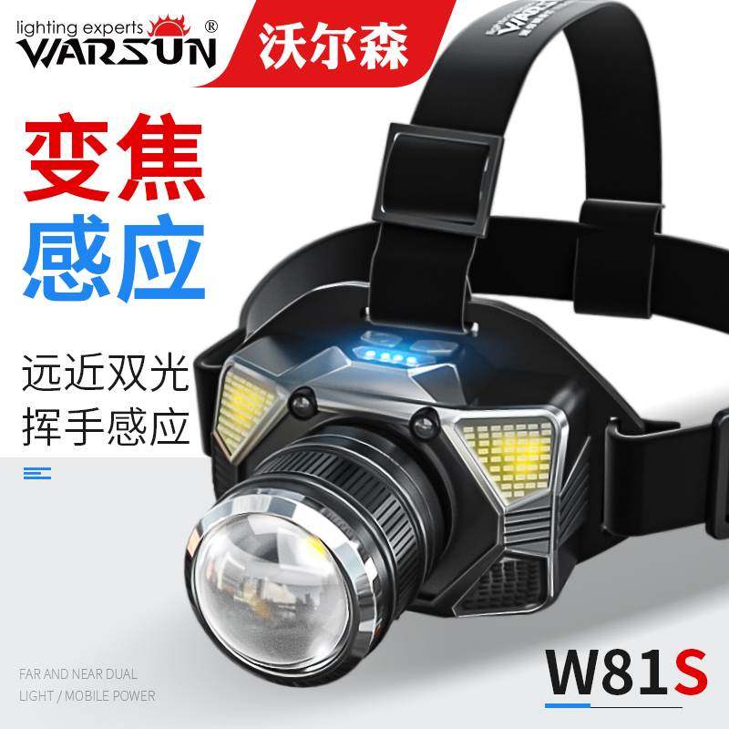 沃尔森WD06感应头灯超强亮光长续航头戴式定变焦户外夜钓鱼工作灯