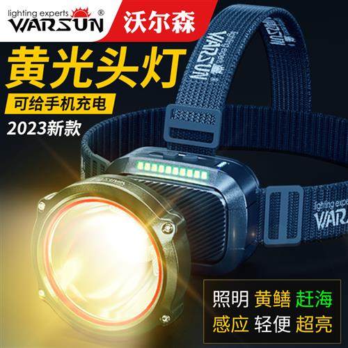 沃尔森头灯赶海钓鱼专用灯黄光强光充电超亮头戴式超长续航小电筒
