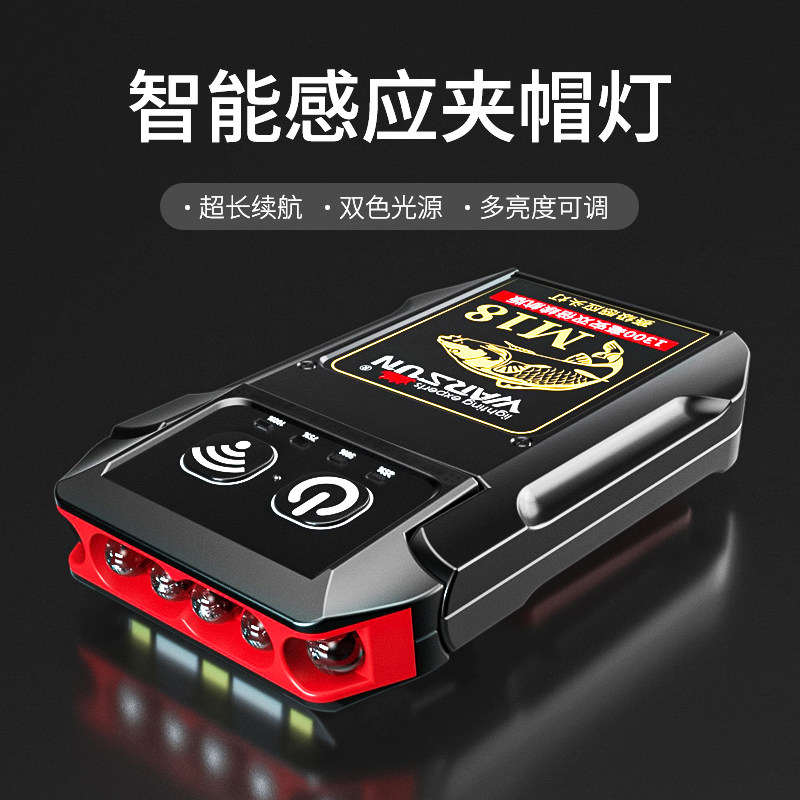 沃尔森帽夹灯钓鱼专用感应头灯强光户外红光夜钓头戴式夹帽灯超亮