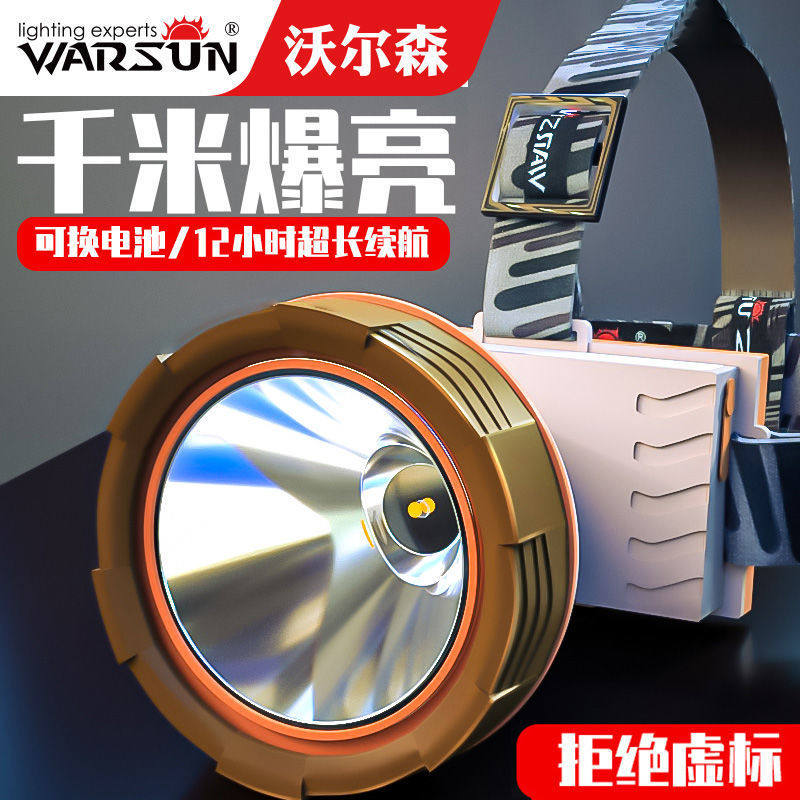 沃尔森头灯强光充电夜钓鱼超亮远射矿灯头戴式手电筒超长续航户外