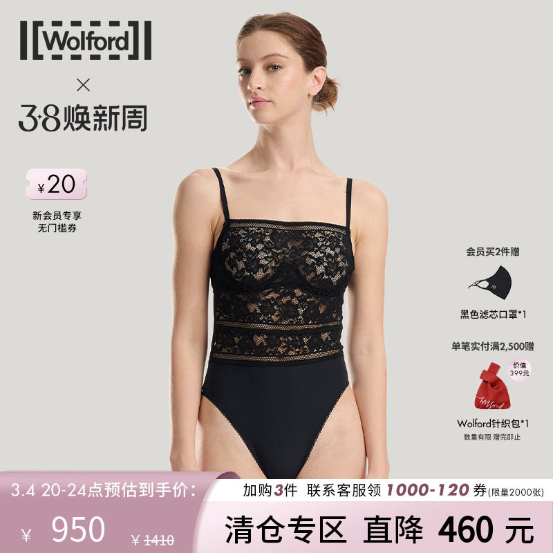 Wolford/沃尔福特Straight夏季新款几何蕾丝吊带连体上衣女79266