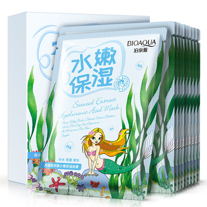 泊泉雅海藻玻尿酸水嫩保湿面膜十片装补水控油滋润肌肤化妆品