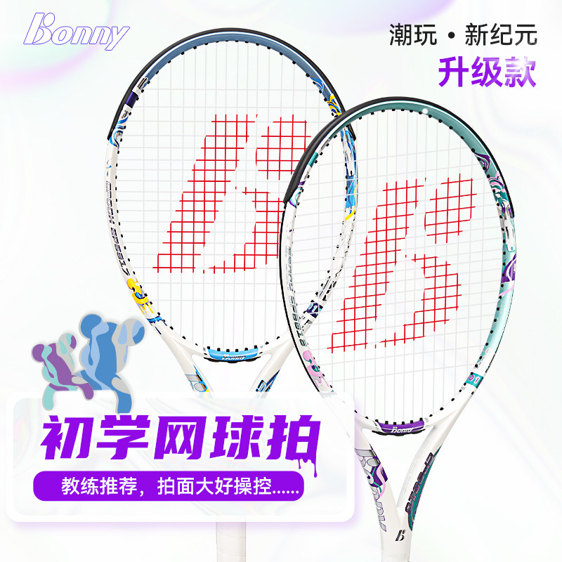 Bonny波力新纪元新手网球拍碳纤维大学生初学入门单人训练一体拍