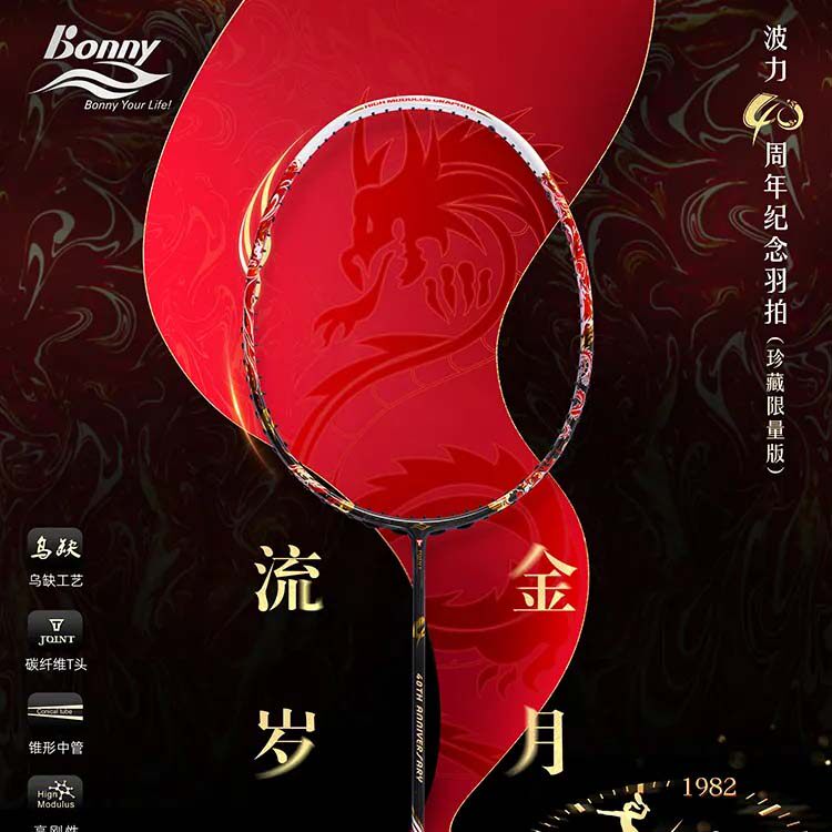正品Bonny波力鎏金岁月40周年专业羽毛球拍乌缺系列进攻拍攻防