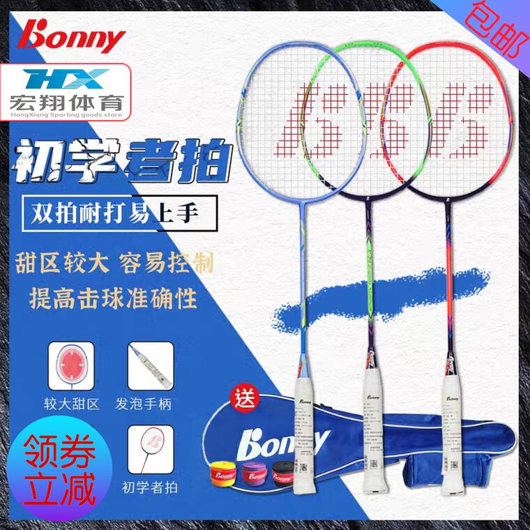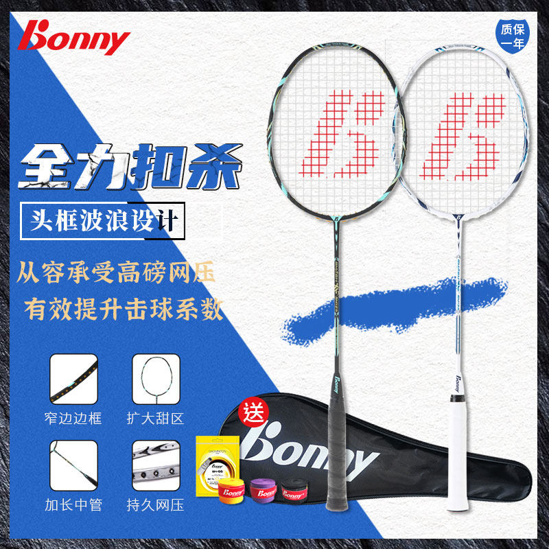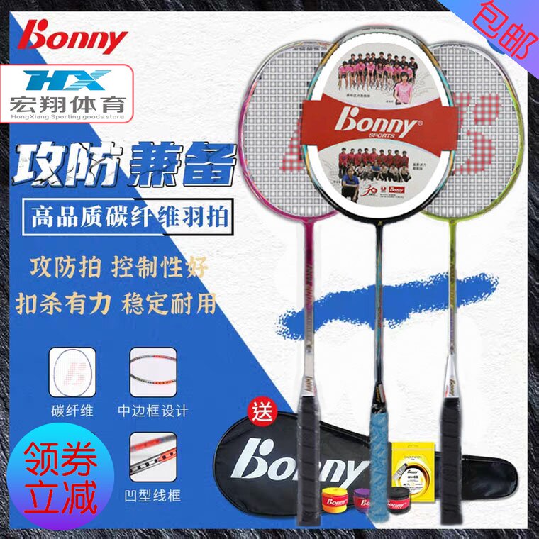 包郵 bonny波力羽毛球拍 攻防兼備高剛性碳纖維 送線送羽毛球 5折