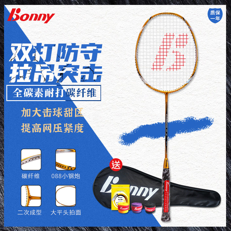 Bonny波力扣杀系列碳纤维进攻型羽拍耐用超轻单拍全碳素羽毛球拍
