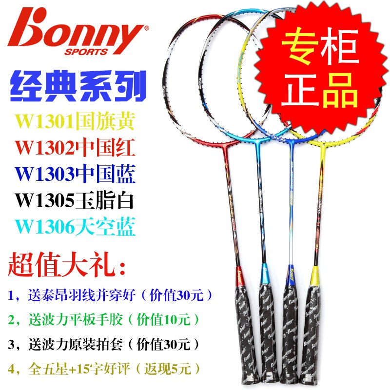 bonny波力CLASSIC W1301 1302 1303专业羽毛球拍全碳攻守兼备送线