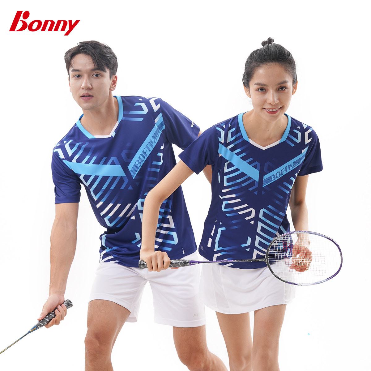 bonny波力男女羽毛球服圆领短袖T恤透气速干舒适运动上衣