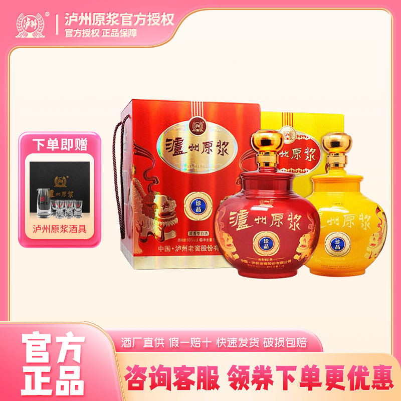 泸州老窖 泸州原浆 60度珍品大坛双狮 1500ml*2坛 整箱浓香型白酒