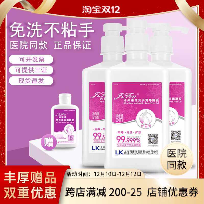 洁芙柔免洗消毒凝胶洗手液杀菌消毒液家用按压瓶免水洗手儿童医