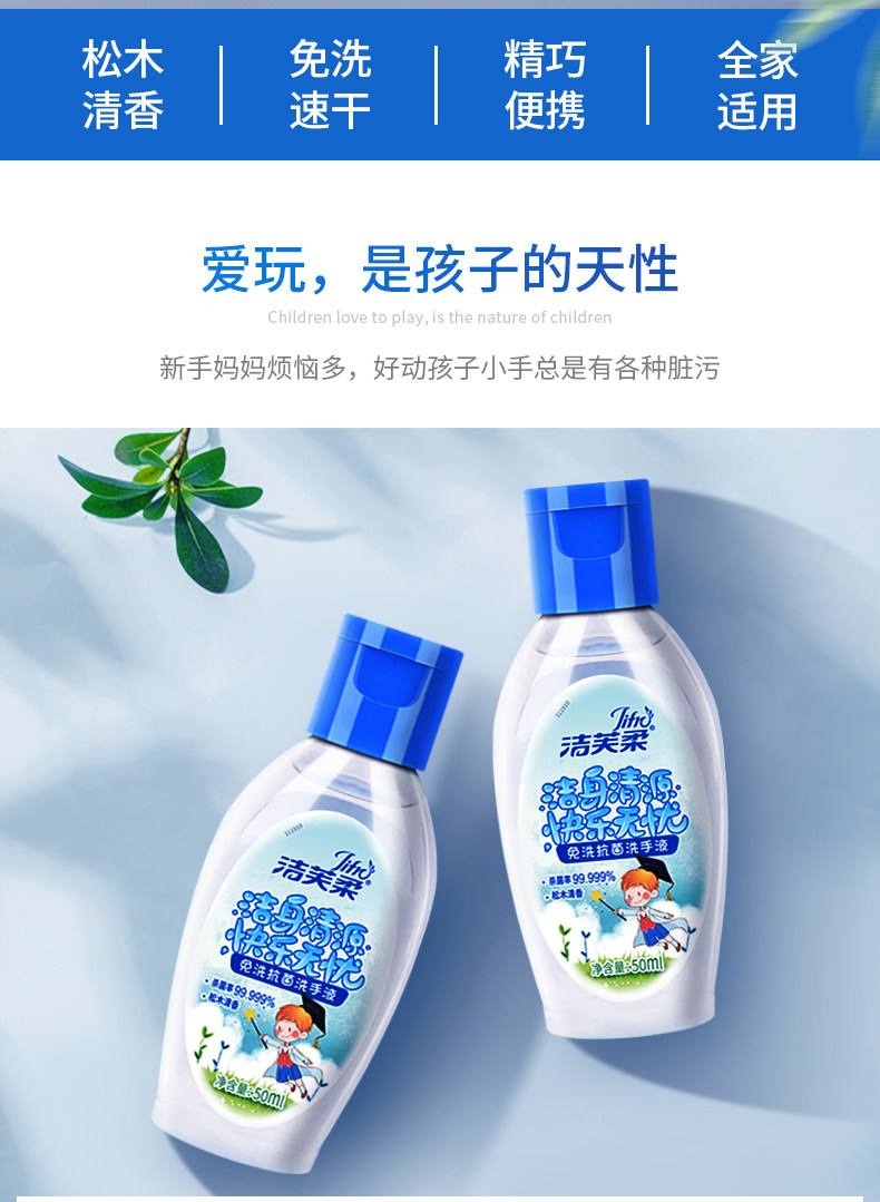 洁芙柔免洗洗手液便携式小学生儿童随身杀菌消毒液酒精凝胶旗舰店