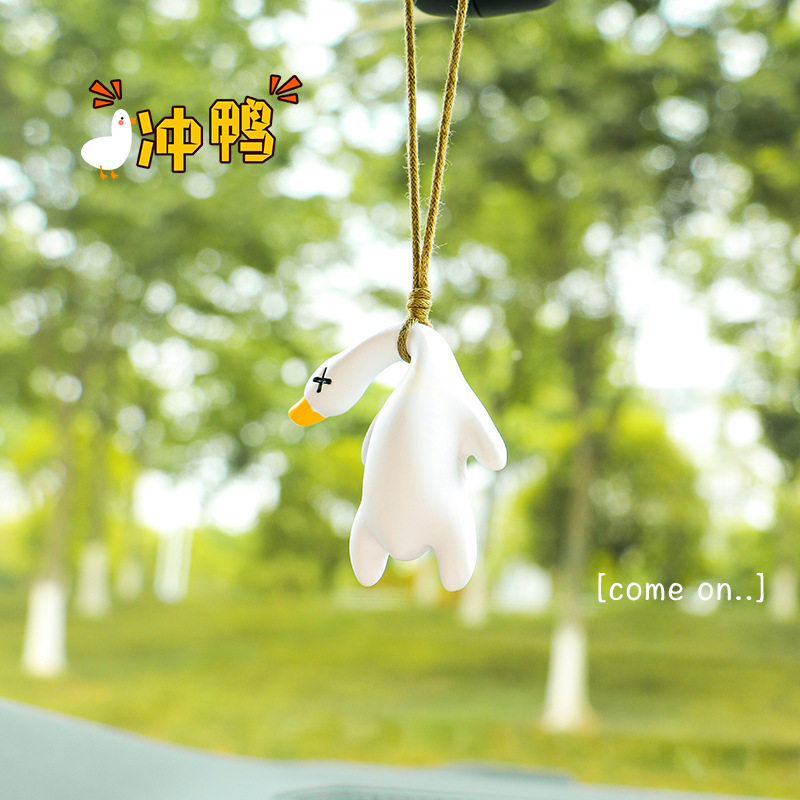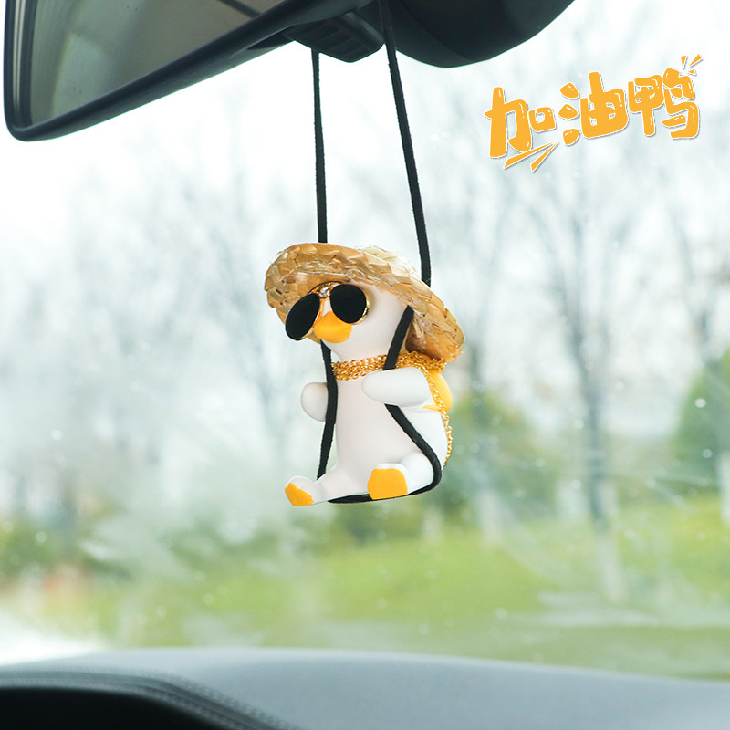 车载烤鸭汽车挂件创意后视镜秋千鸭挂饰车载网红卡通可爱车内装饰