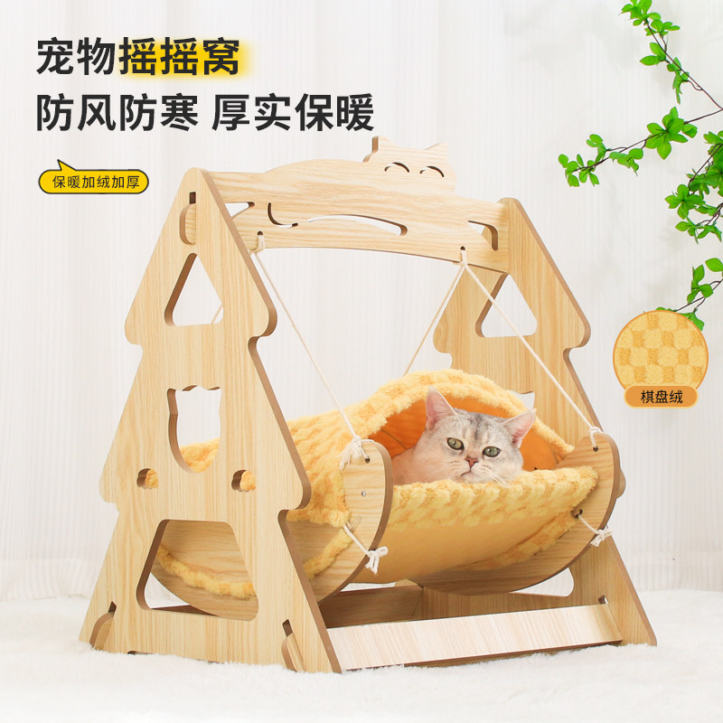 猫窝猫床宠物吊床简约摇篮四季夏季大号摇摇床小狗猫咪秋千木质