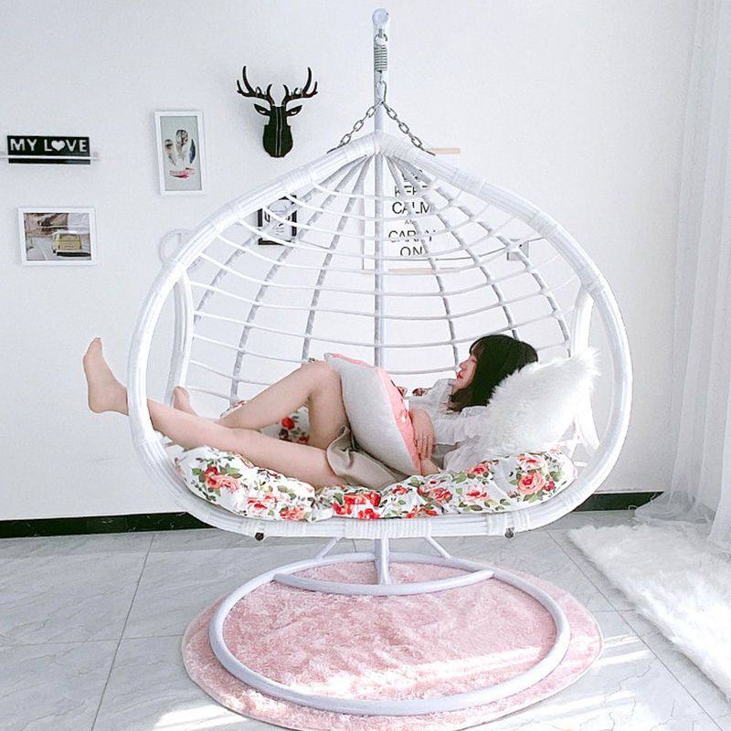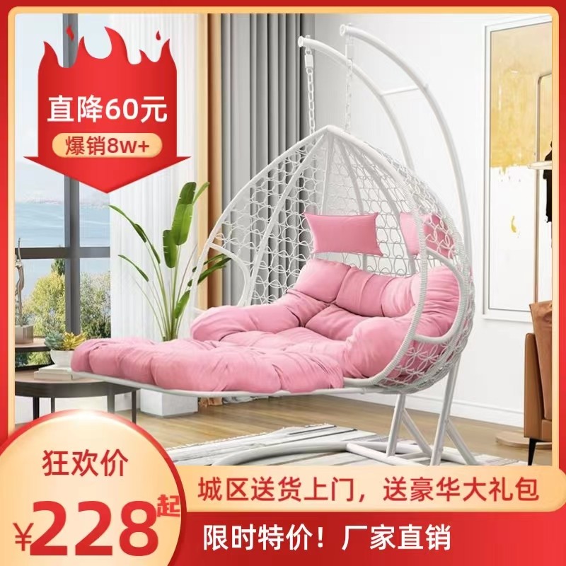 吊篮懒人双人休闲脚踏室内阳台粗藤摇椅北欧悬挂粉色舒适鸟巢家具