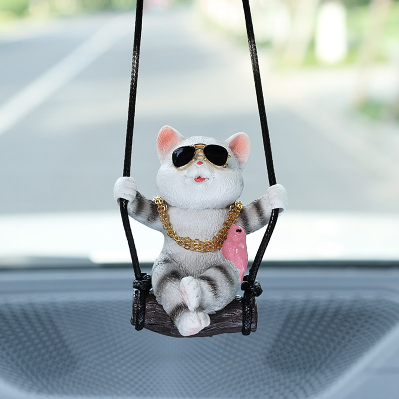 汽车挂件小猫可爱2024新款车载后视镜吊坠高级感秋千猫车挂件饰品