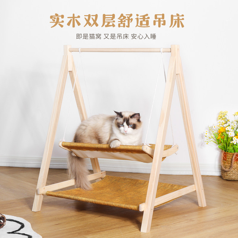 猫吊床猫咪秋千实木猫窝吊篮四季通用麻绳吊窝挂床狗窝宠物摇床