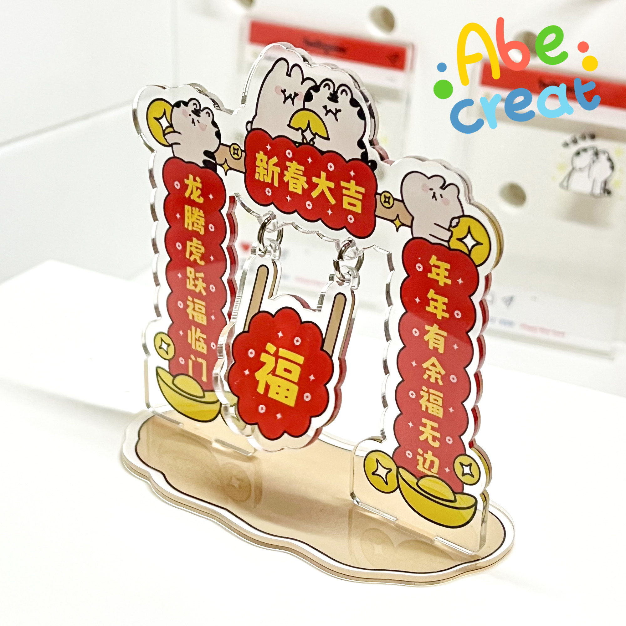 汪啊虎虎春联荡秋千亚克力桌面摆件 | 必易新年年味办公书桌立牌