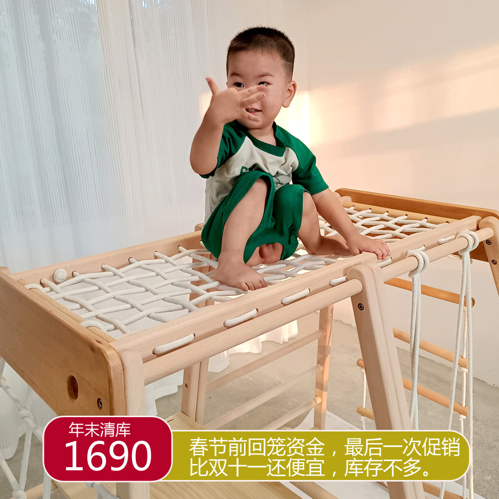 儿童室内榉木攀爬架宝宝婴幼儿家用攀爬小型玩乐秋千实木组合