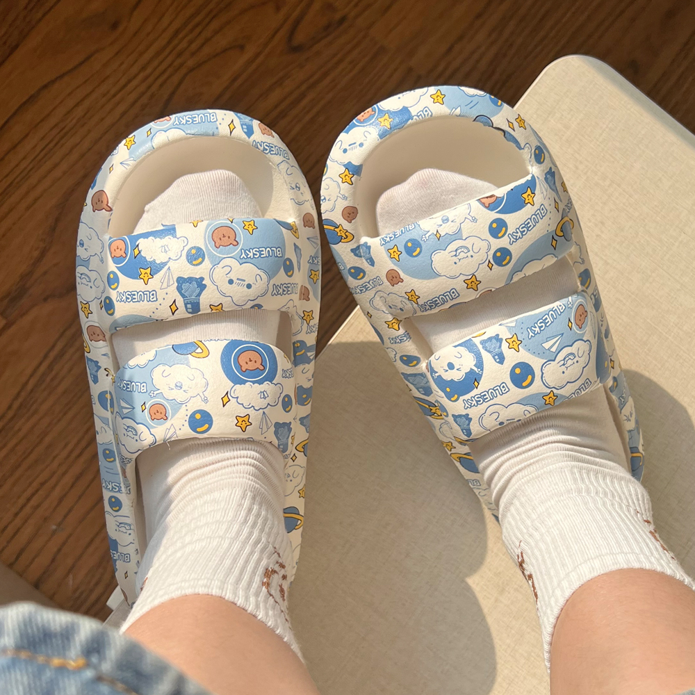 2023新款双带蓝色星球拖鞋女夏外穿网红ins潮高级感厚底凉拖 秋千