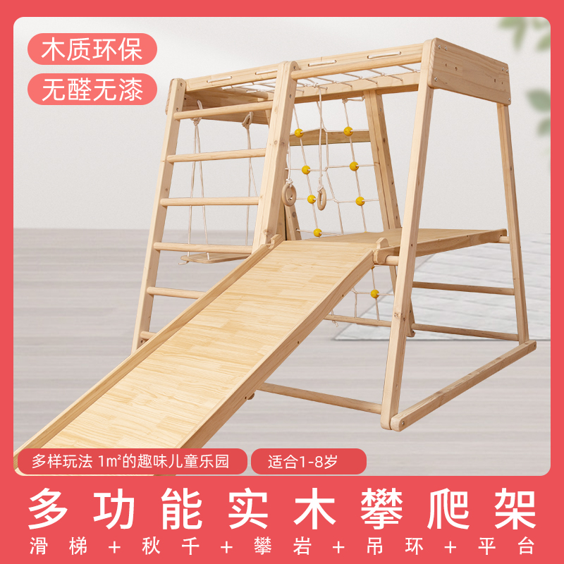 儿童室内榉木攀岩攀爬架宝宝婴幼儿家用攀爬小型玩乐秋千实木组合
