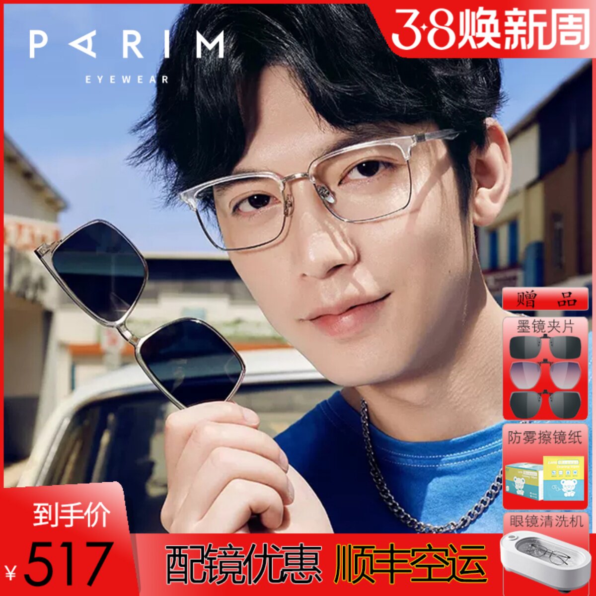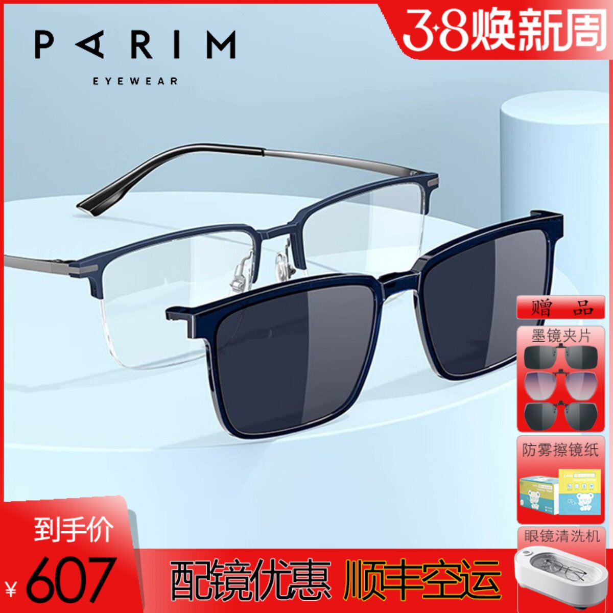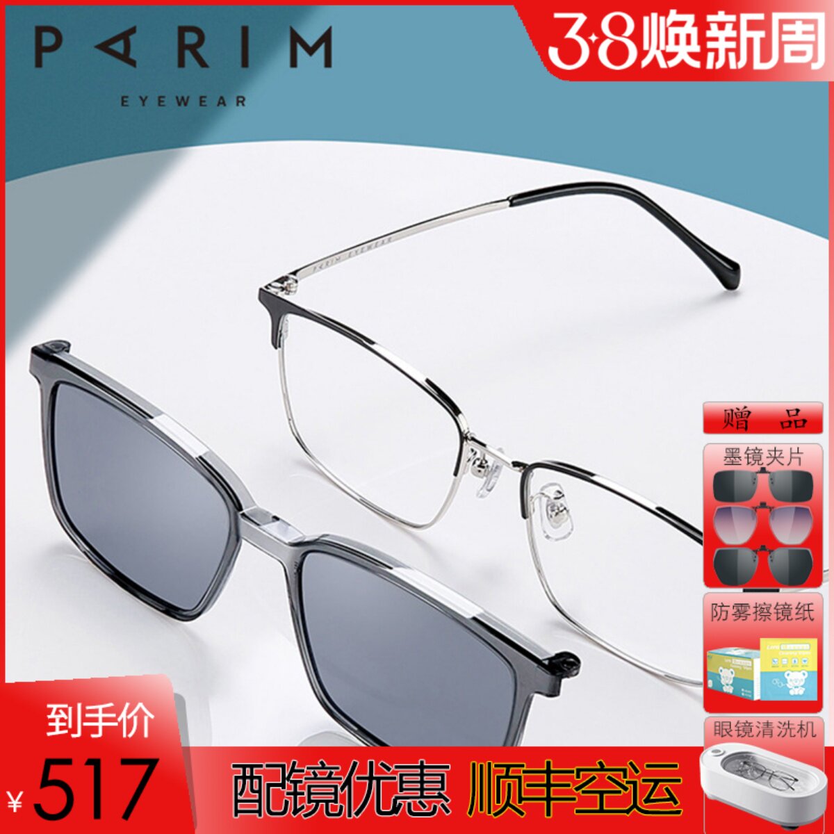 派丽蒙超轻镜架 男款磁铁偏光墨镜夹片太阳镜 近视眼镜框女PR7917