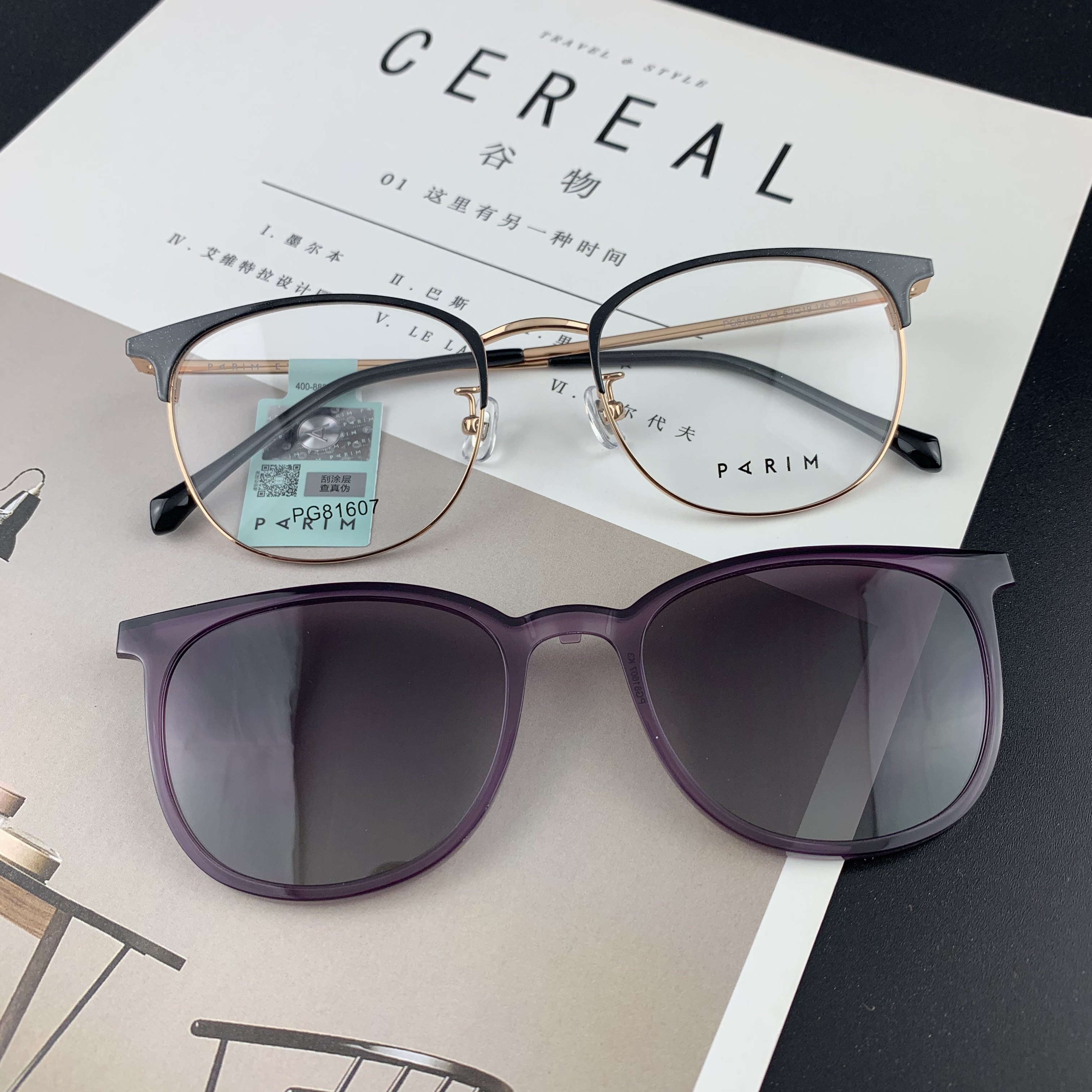 PARIM/派丽蒙 男女款磁铁偏光墨镜夹片太阳镜近视眼镜套镜PR7933