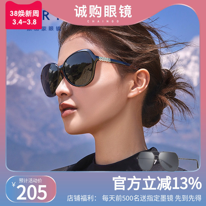 派丽蒙偏光夏季太阳镜女防紫外线圆脸大脸显瘦配度数时尚近视墨镜