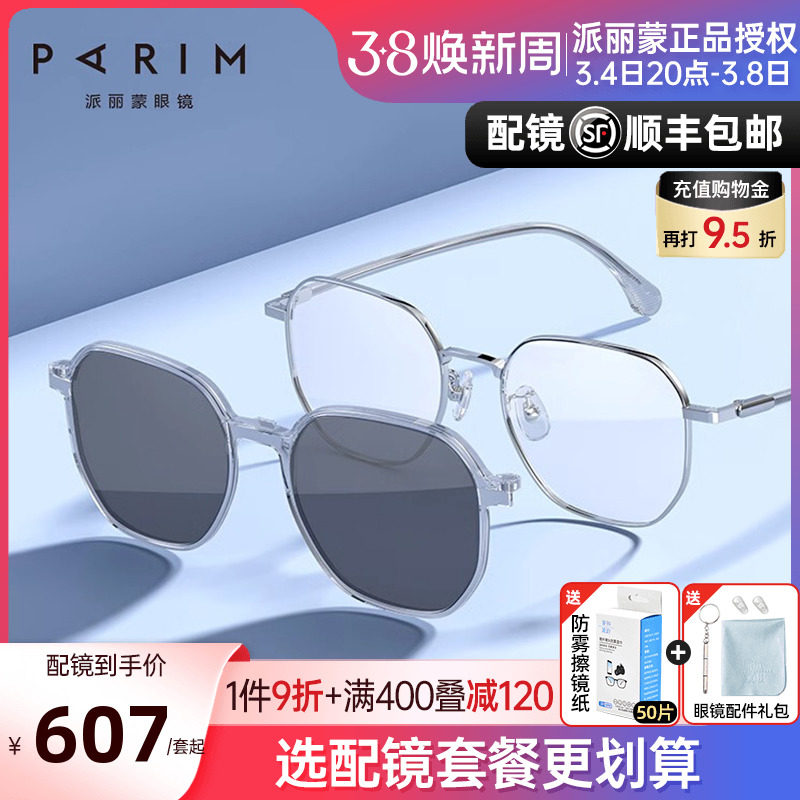 派丽蒙近视眼镜架女黑框眼镜框男潮太阳镜可配度数偏光磁吸镜7920