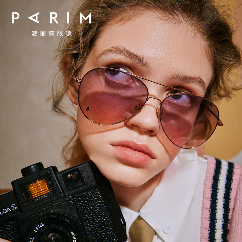 彩色太阳镜派丽蒙防紫外线大框显脸小墨镜女夏防晒变色眼镜76025