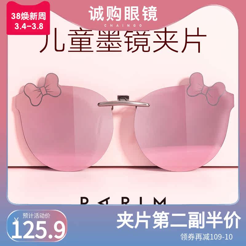 派丽蒙新款儿童蝴蝶结近视墨镜夹片学生超轻偏光夹片式太阳镜