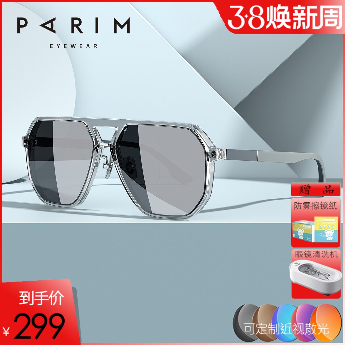 派丽蒙近视偏光墨镜男士开车专用定制不偏光太阳镜套餐女款配度数