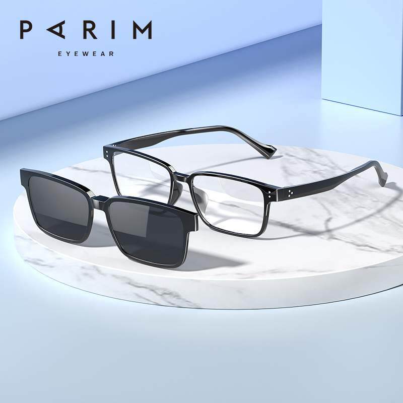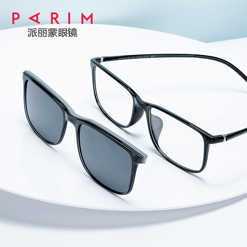 眼镜架派丽蒙一镜两用磁吸男士眼镜框可配镜片近视黑框眼镜81605