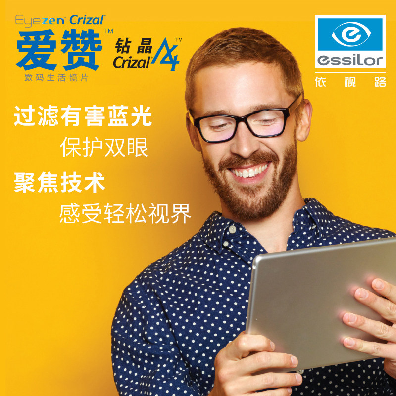 依视路防蓝光a4钻晶1.67眼镜片抗防辐射近视镜片超薄1.74配近视镜