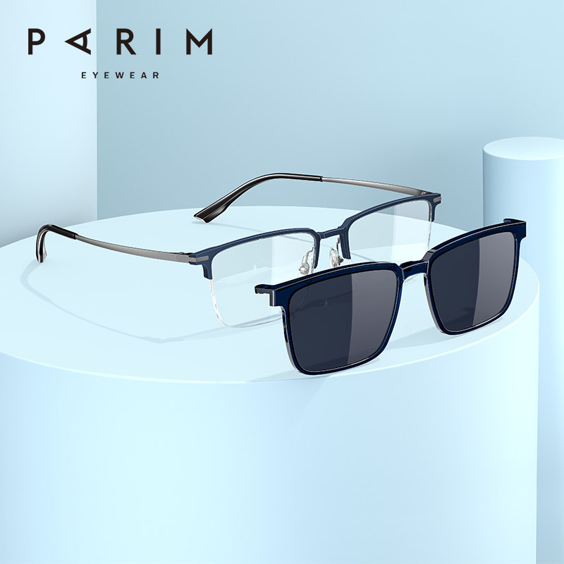 眼镜架派丽蒙半框磁吸套镜方形眼镜框潮男可配镜片近视眼镜97002