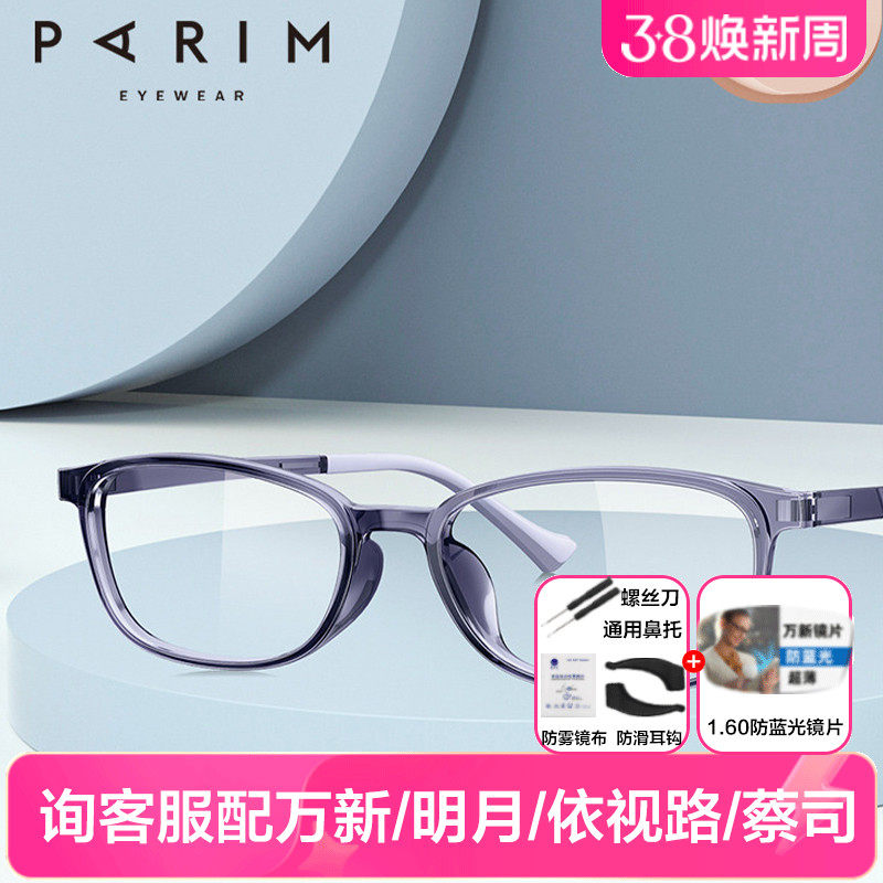 PARIM派丽蒙眼镜架时尚透明框近视镜男女款超可配防蓝光镜片86006