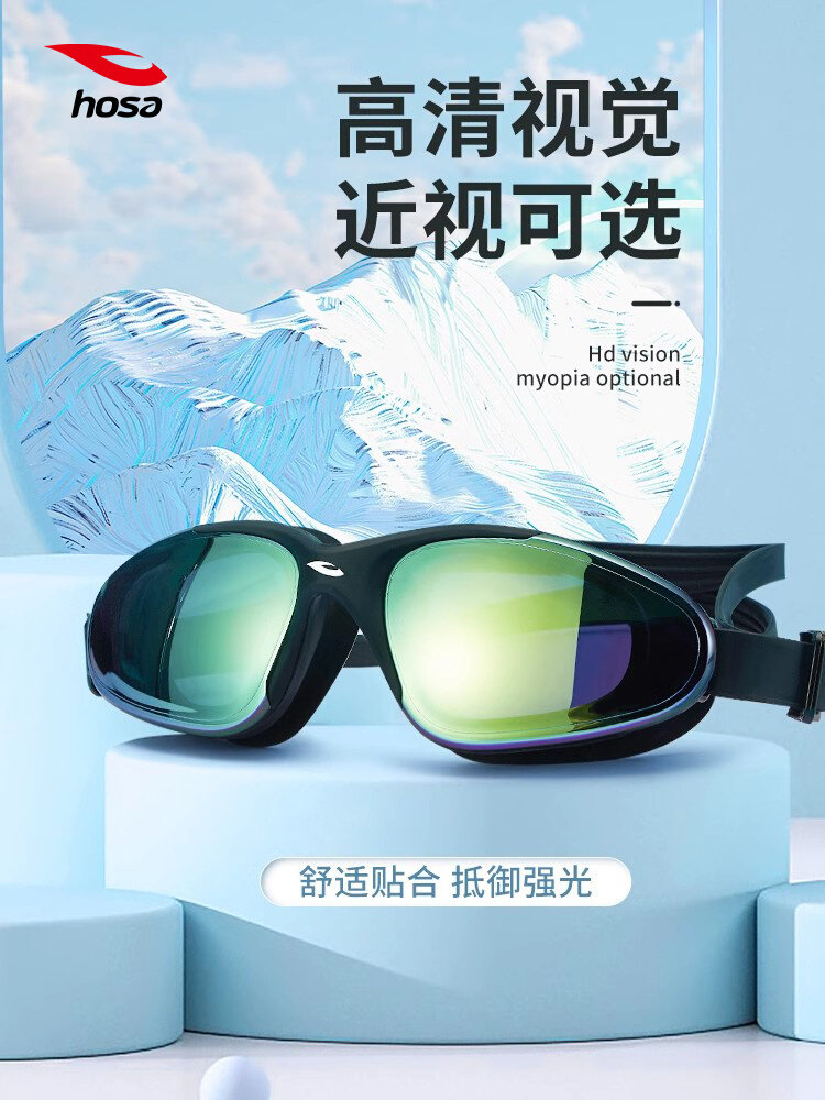 hosa浩沙泳镜新款游泳眼镜防水防雾高清大框游泳镜防眩光男女通用