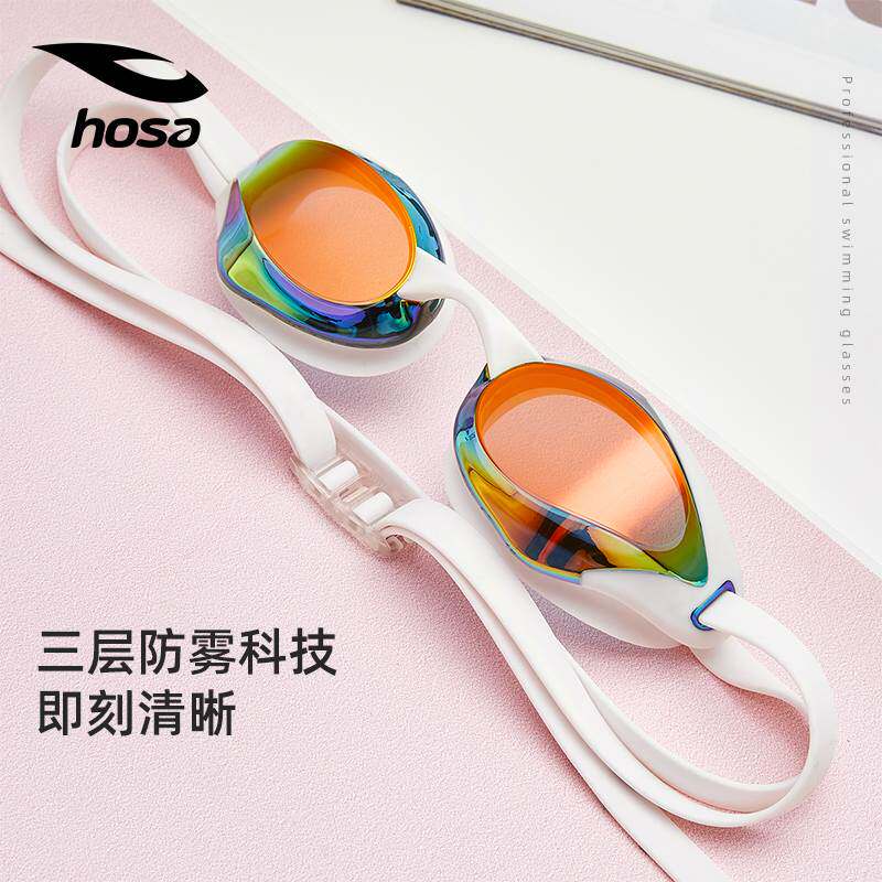 浩沙hosa游泳镜防雾高清男 2023新款女防水专业电镀成人游泳眼镜