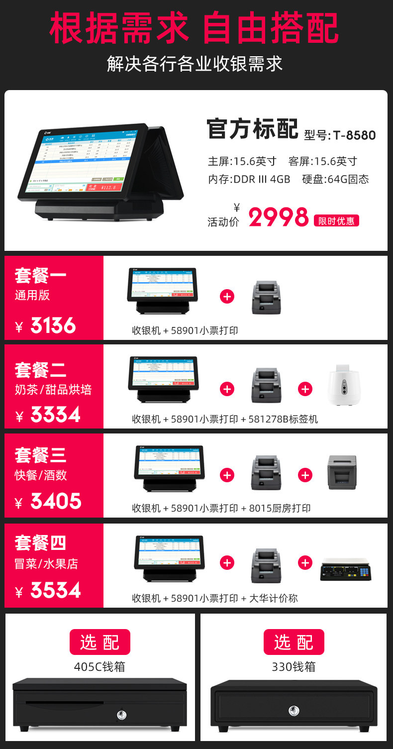 浩顺T-8580双屏收银机一体机触摸屏餐饮快餐奶茶店外卖点餐点单机