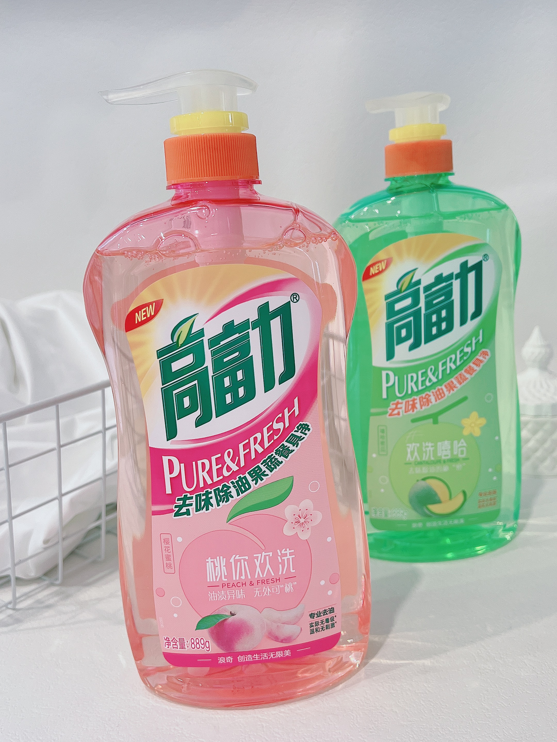 浪奇高富力强效去油洗洁精889gx2瓶无磷不伤手厨房有效去油洗涤剂