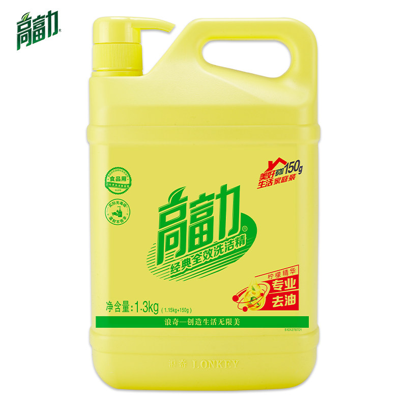 拍2件 浪奇高富力经典全效洗洁精清新洁净去油污1.3kg大瓶装家用