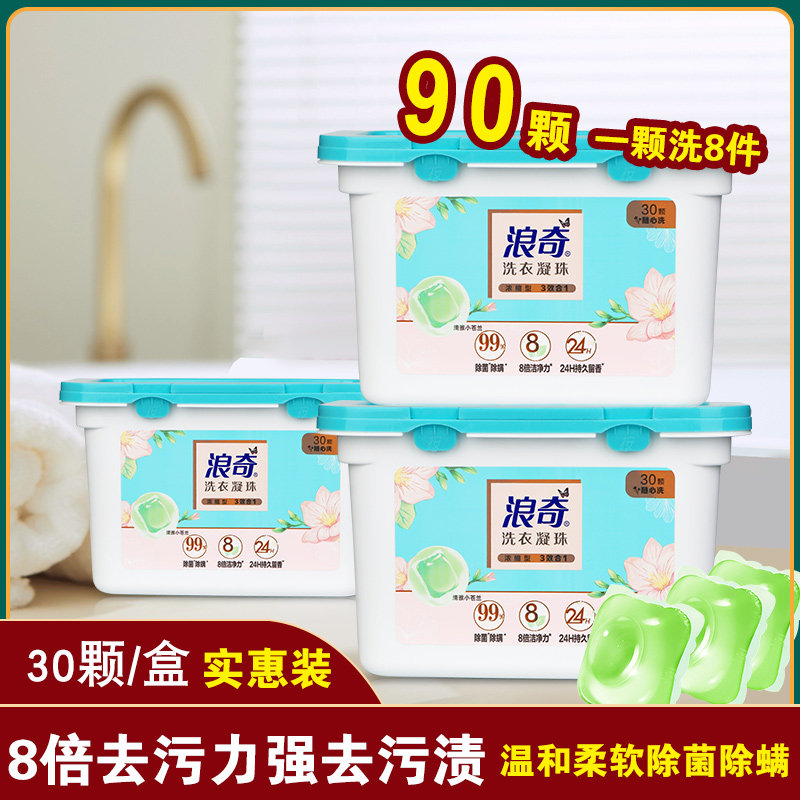 浪奇洗衣凝珠洁净持久留香洗衣液除菌去渍除螨柔顺浓缩家庭装30颗