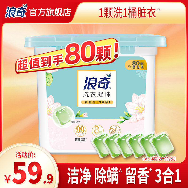 浪奇洗衣凝珠除菌除螨小苍兰持久留香机洗浓缩洗衣液家庭装80颗