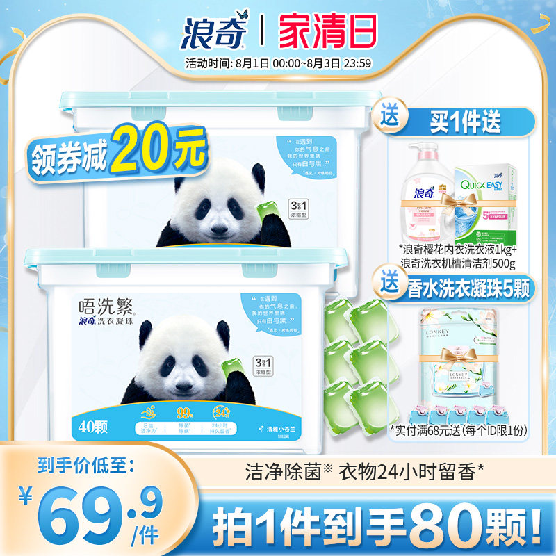 浪奇唔洗繁洗衣凝珠8倍净去污小苍兰留香洗衣液家用实惠装80粒