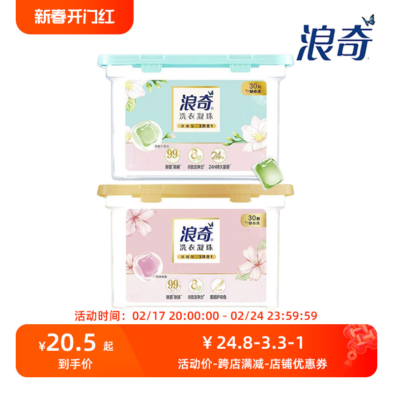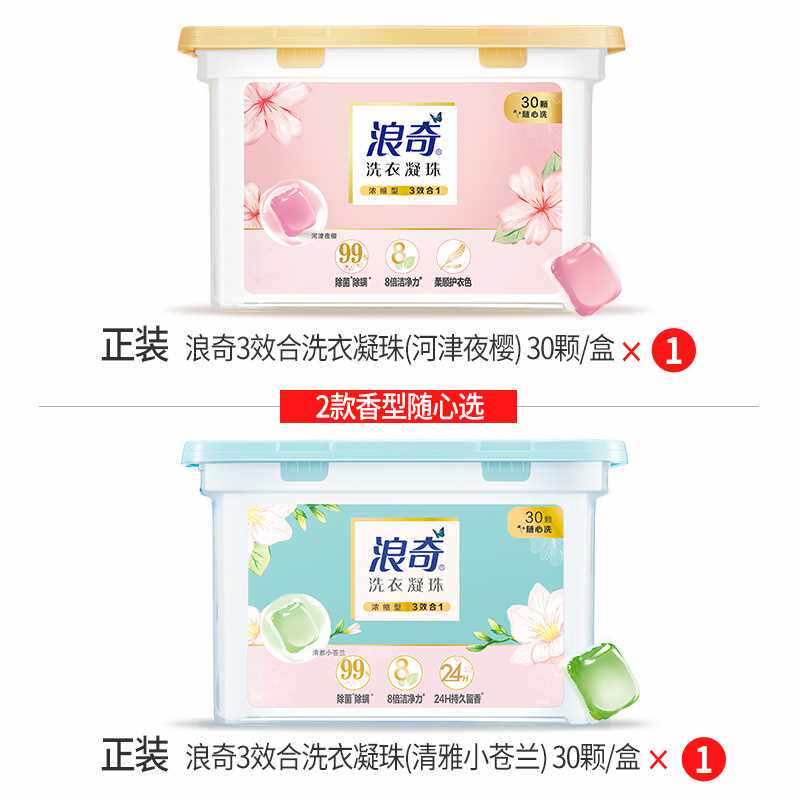 【50/30颗】浪奇洗衣凝珠洁净持久小苍兰樱花香除菌去渍除螨浓缩