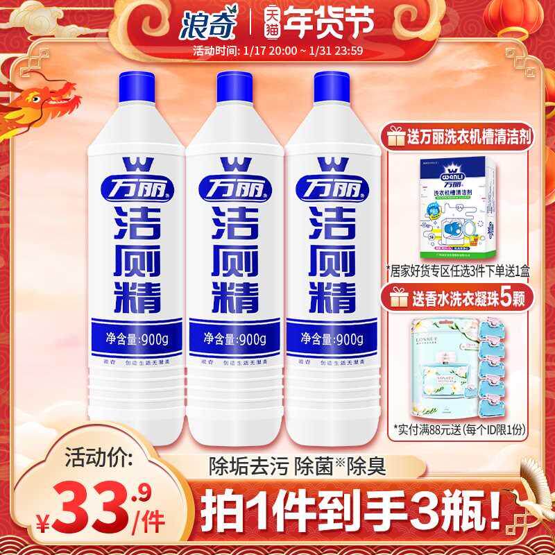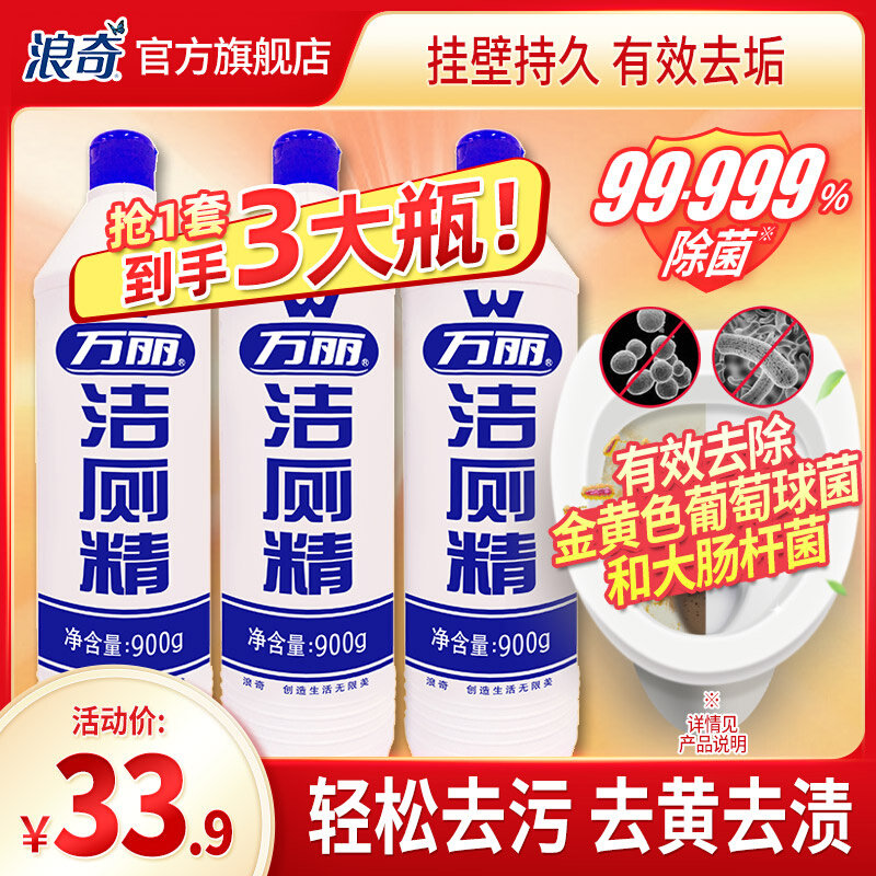 浪奇万丽3瓶900g洁厕精厕所马桶清洁剂酒店专用洁厕灵家用优惠装