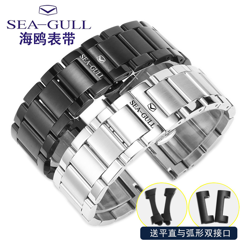弧口手表带钢带 适配依波海鸥罗西尼浪琴通用表带 18 20 21 22mm