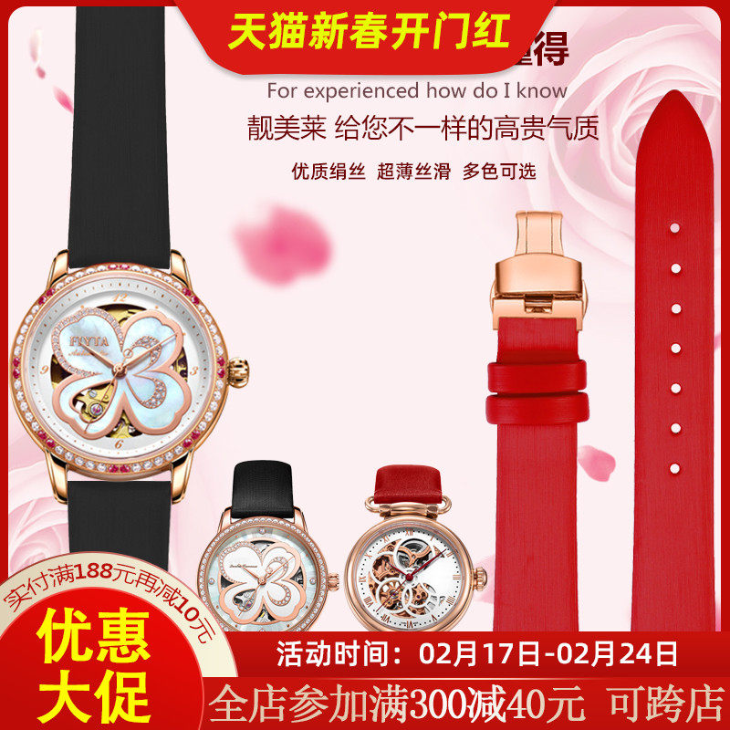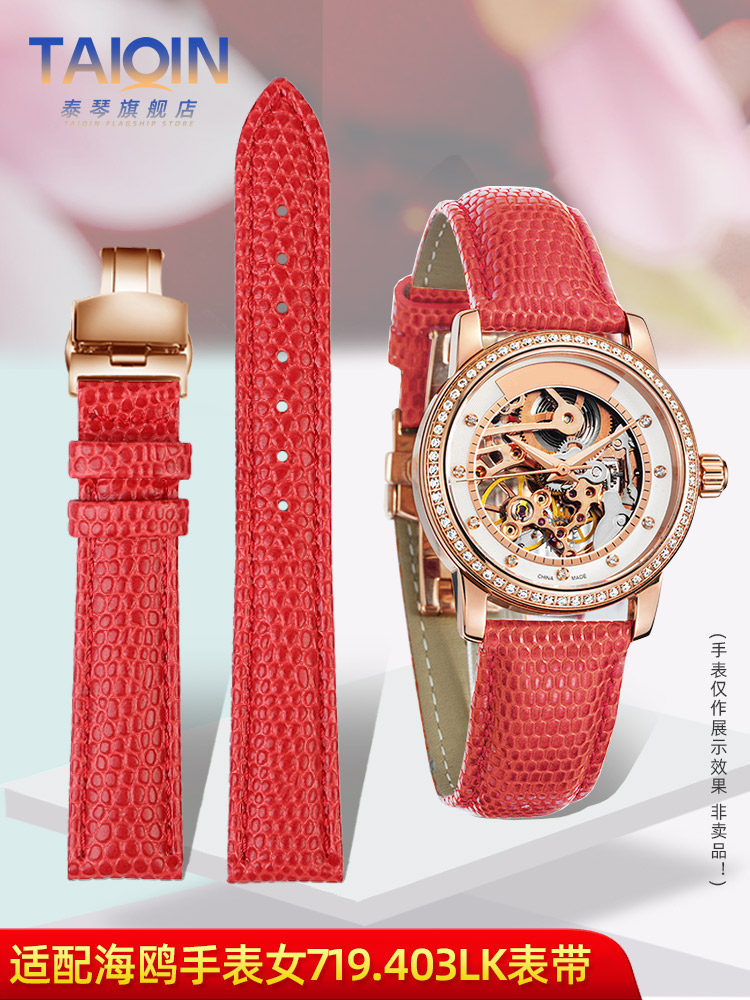 真皮手表带 适配Seagull海鸥女表719.403LK红色表链蝴蝶扣 18mm